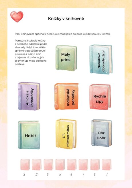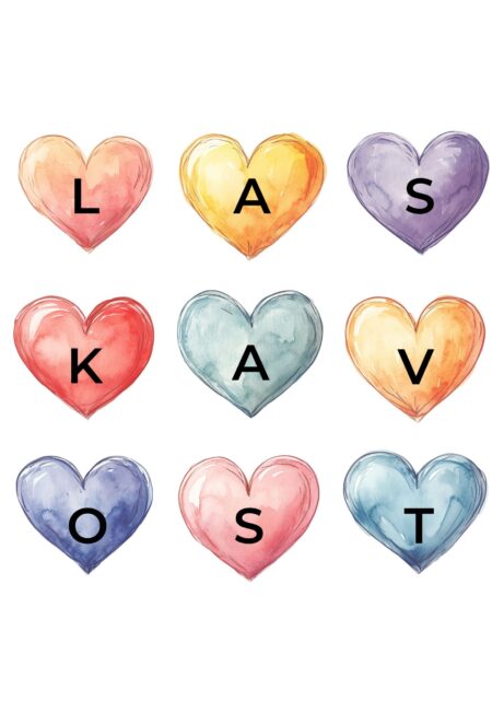 - Závěr stezkyNa konci stezky děti ze srdíček s písmenky poskládají tajenku a poté jim můžete předat diplom, případně malou odměnu.
